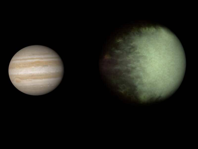 Ha egyetlen hely is van a Naprendszerben, ami vetekedni tudna a Földdel, az a Titán. A Szaturnusz holdja egyben a második legnagyobb a Naprendszerben, a Jupiter Ganymedes holdja után. A Titán bizonyos értelemben hasonlít a mi bolygónkra. Vaskos atmoszférája az otthonra emlékeztethet, habár a légnyomás egy kicsit nagyobb, mint idehaza.