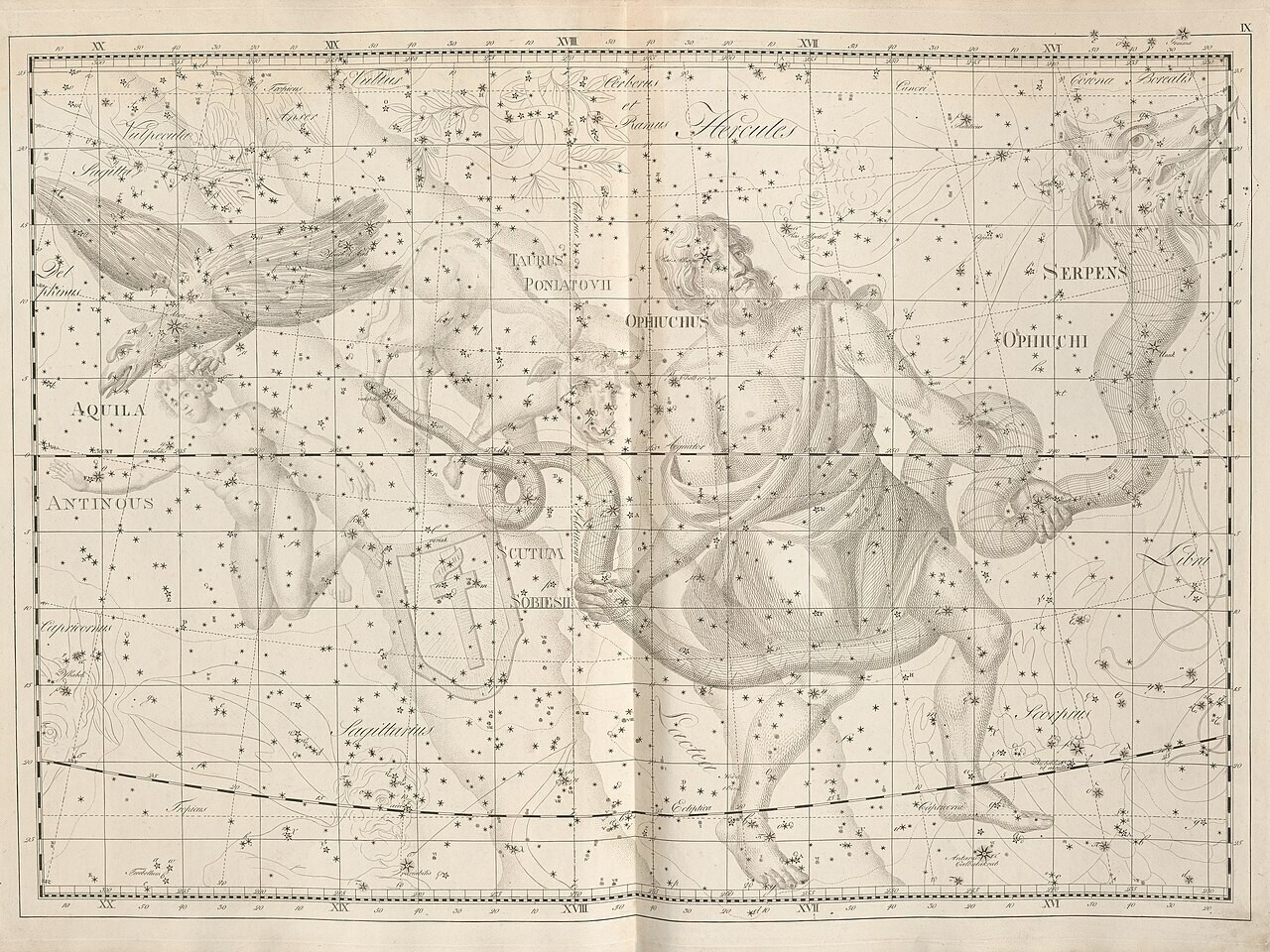 Megfigyelésére legkedvezőbbek a nyári éjszakák, hiszen ekkor látható tőlünk a legjobban. Az égi egyenlítő két oldalán helyezkedik el, a Sas, Kígyó, Skorpió, Nyilas és Herkules csillagképek által közrefogva. Keleti felébe belenyúlik a Tejút egyik ága, amelyet a csillagkép közepe táján fényelnyelő sötét ködök szakítanak meg.