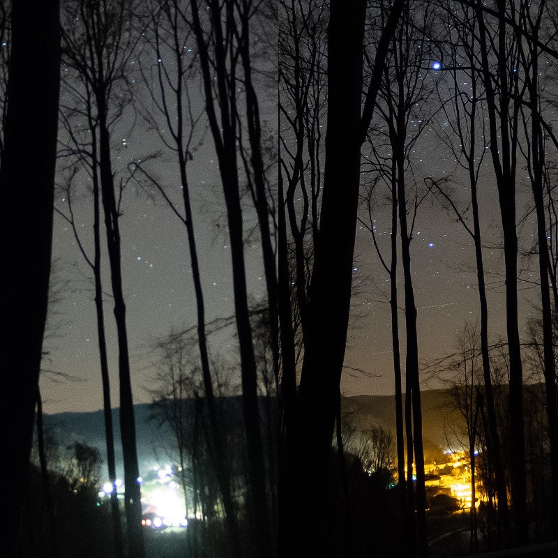 Meglepődve tapasztaltuk ugyanakkor, hogy mennyire fényes volt az északi égbolt. Bár nagyvárosi társaim közül valaki meg is jegyezte, hogy ő még sohasem látott ennyi csillagot (ez önmagában rendkívül szomorú látlelet a városi égbolt helyzetéről), sajnos az igazság az, hogy kifejezetten gyatra ég tárult fölénk. Egészen megdöbbentő volt, hogy a kisváros utolsó utcájában – ahol este már a madár se jár, néhány hozzánk hasonló amatőrt leszámítva – minden ház ajtaján szabályosan rikított valamiféle díszvilágítás, s hogy az utolsó lakott épületek után is még vagy száz méternyire folytatódott a közvilágítási lámpák sora. Váratlanul sokat kellett gyalogolnunk a főúton, amíg értelmezhetően sötét helyet nem találtunk.