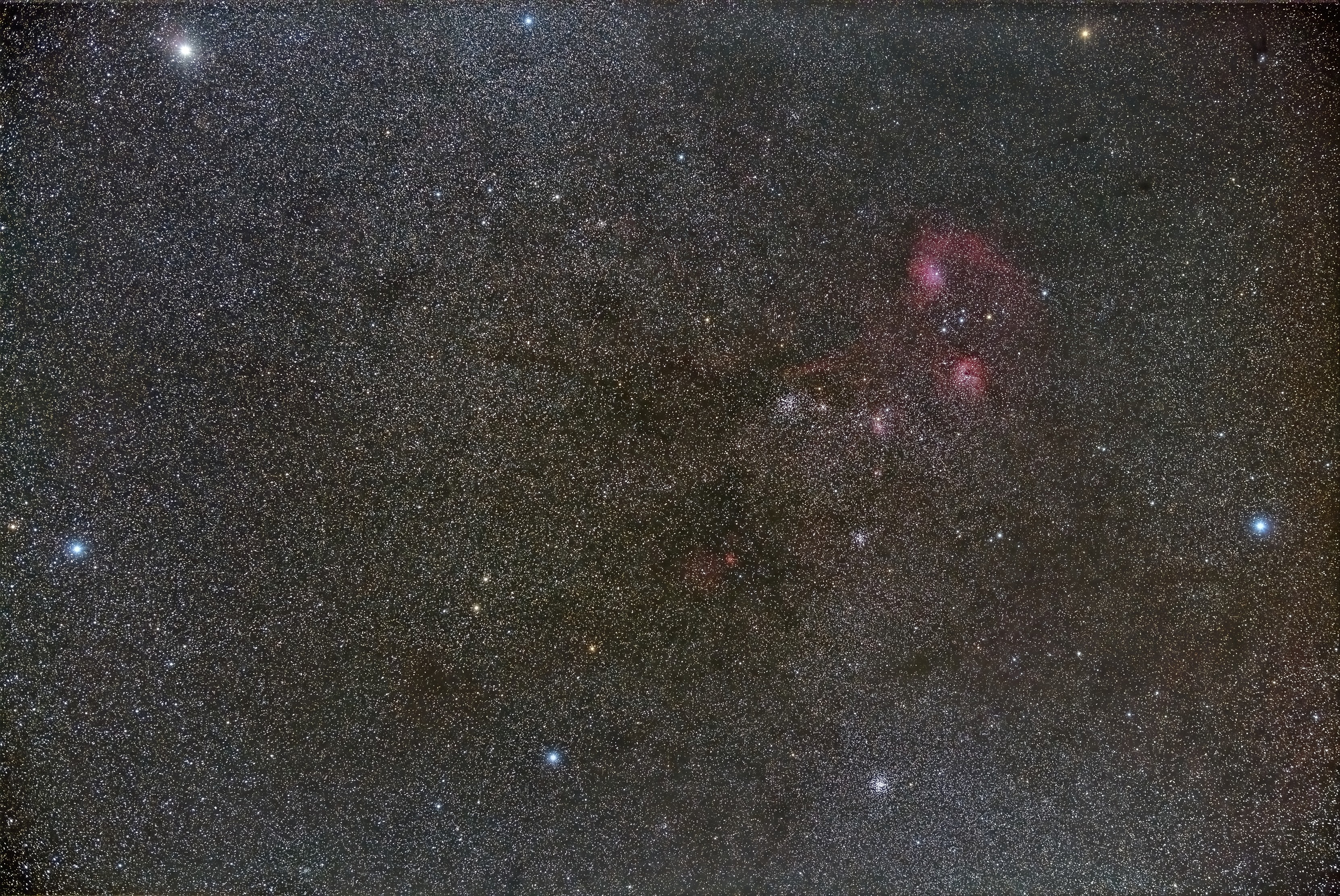 • IC 405 (Lángoló Csillag-köd/Flaming Star nebula): emissziós és reflexiós köd az AE Aurigae kékes, szabálytalan változócsillag körül. A köd kb. 1500 fényévre van a Földtől, átmérője pedig 5 fényév.