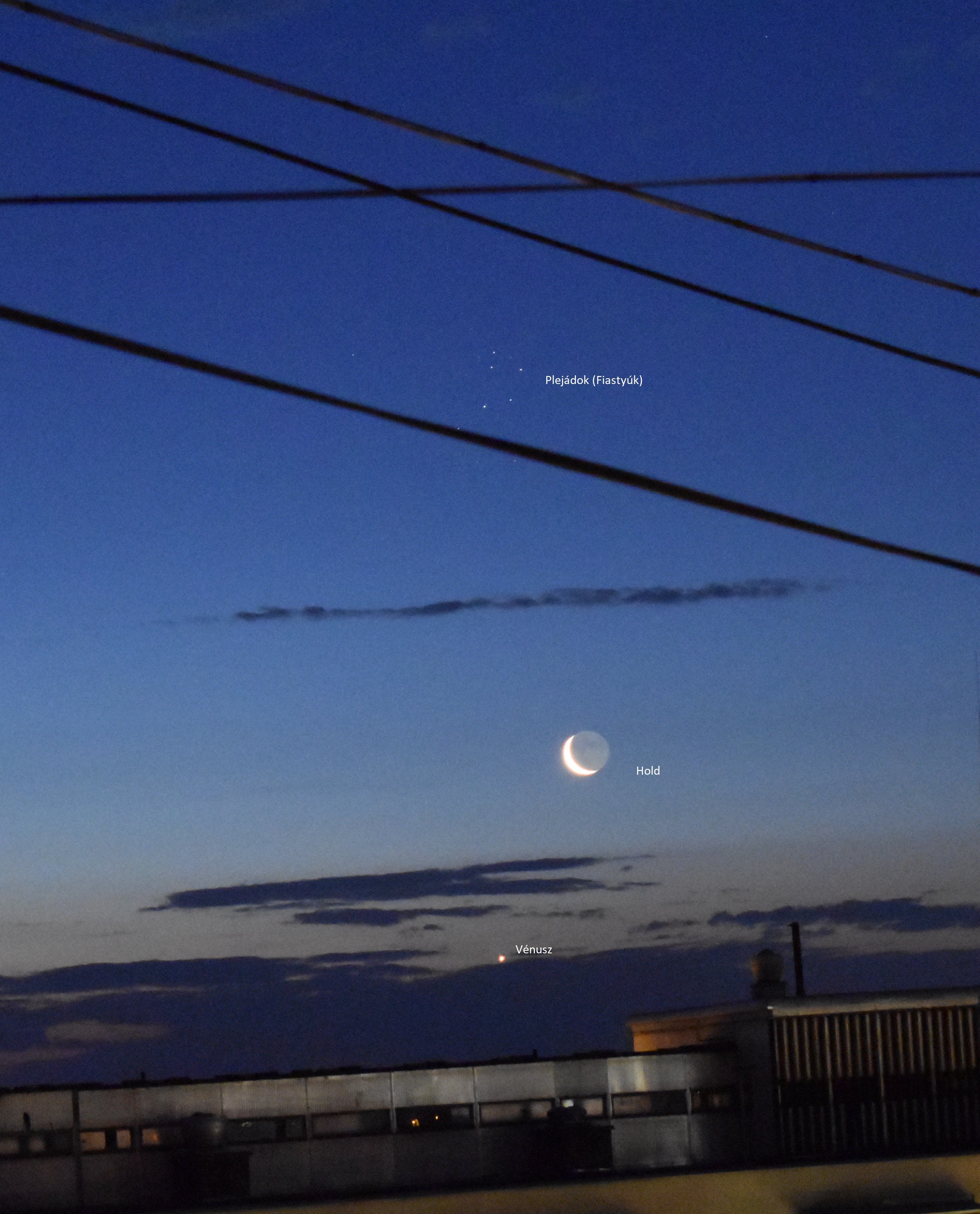 A borítóképen: Az együttállás július 22-én hajnali 3-kor. Az objektumok mérete és a Fiastyúk kibenléte becsapós! Forrás: Stellarium, Kereszty Zsolt, freesvg.org