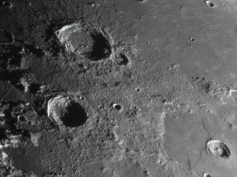 A ritka jelenség során, amíg várjuk a fedéseket, érdemes észlelnünk a Hold krátereit az árnyékvonal mentén. Égi kísérőnk északi, felső részén lesz látható az Aristoteles és Eudoxus kráterpáros. A 87 kilométer átmérőjű Aristoteles-kráter 3,2–1,1 milliárd évvel ezelőtt keletkezett, és egy igazi észlelési csemege. Központi csúcsain és teraszos kráterfalain túl a krátert körülvevő törmeléktakarót is megfigyelhetjük. Alatta helyezkedik el az 1,1 milliárd évvel ezelőtt keletkezett Eudoxus-kráter, amelynek átmérője 68 kilométer. Szintén központi csúcsokat és teraszos kráterfalakat pillanthatunk meg távcsövünkben.
