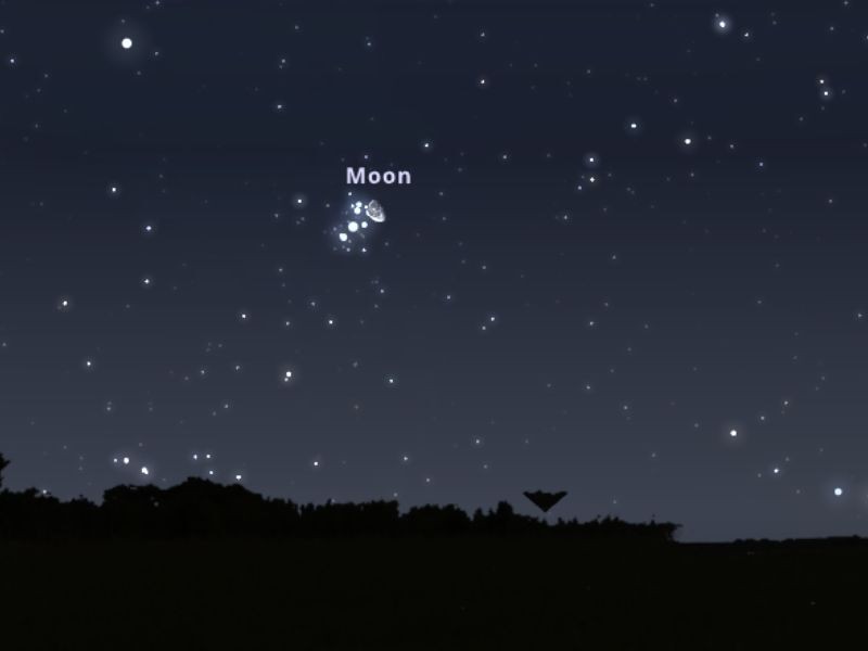 A 67%-os fázisú, fogyó Hold elfedi a Fiastyúk csillaghalmaz kék csillagait. Nagyobb nagyítású kézi távcsővel a Hold sötét oldalán kilépő, míg csillagászati távcsővel a világos peremnél belépő csillagokat is észlelhetjük. Ráadásul az este során a Hold egyik legszebb kráterpárosát is megcsodálhatjuk. A ritka jelenségről nem érdemes lemaradni, mivel csak 18 évente látható hasonló égi jelenségsorozat.