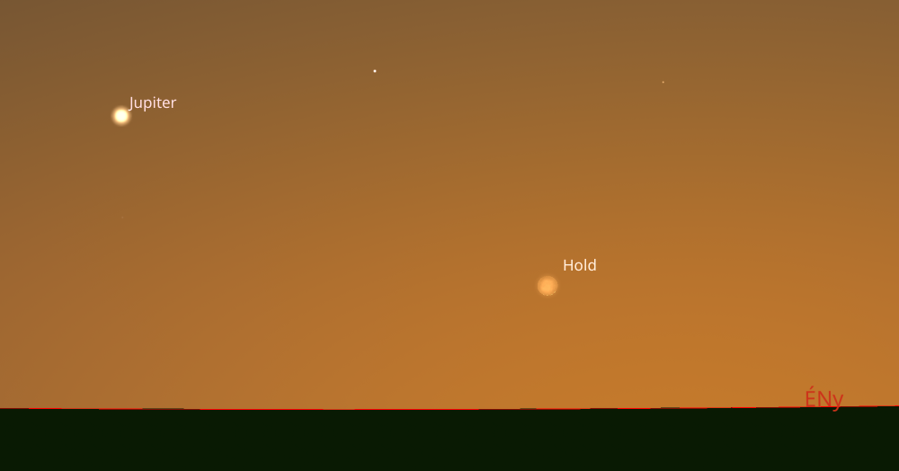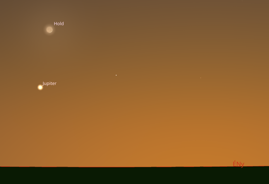 A Jupiter a polgári szürkület végén még 7°-os magasságban látható majd, a nyugati horizontra való rálátásnak tökéletesnek kell lennie a megfigyeléséhez.