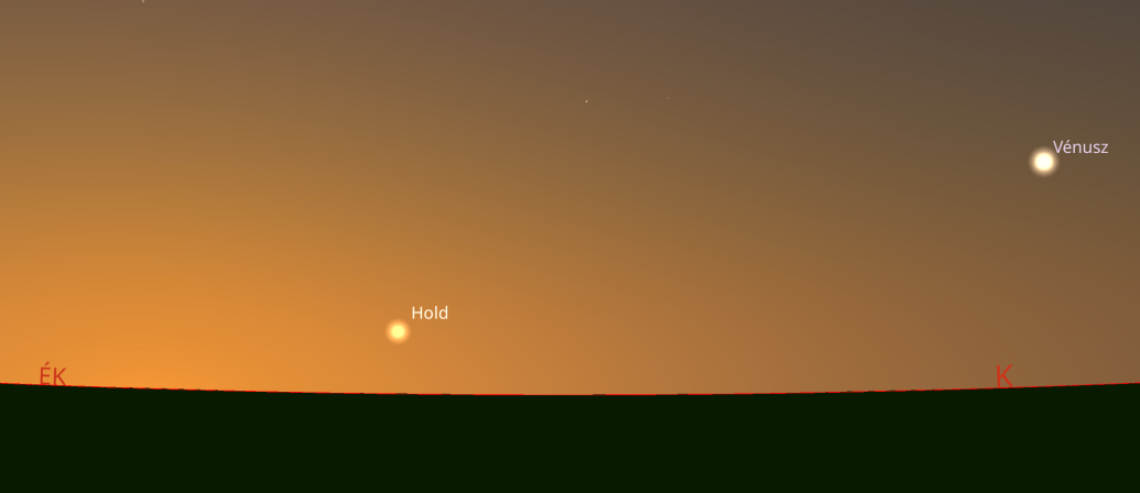 A május hónap egyik legizgalmasabb holdsarlós égi jelensége május 26-án, hétfőn 4:18-kor következik be, amikor a Hold csupán 2%-os fázissal tűnik fel a hajnali égen, rendkívül vékony sarlóként. A holdsarló ilyenkor még csak egy hajszálvékony, ezüstös ív, amely szinte alig észlelhető, és mintegy szimbolizálja a Hold és a Föld közötti kapcsolatot, ahogy az égitestek mozognak. Ez a jelenség egy olyan pillanatot kínál, amikor a csillagászat iránt érdeklődők az égre szegezhetik tekintetüket, és csodálhatják a természet e különleges formáját. Ez a holdsarló pontosan 24 óra 44 perccel újhold előtti állapotot tükröz, és a legjobb megfigyelési időpont a polgári szürkület kezdetére esik, még azelőtt hogy a Nap felkelne. A Hold ekkor mindössze 3° magasságban lesz látható a látóhatár felett, ami azt jelenti hogy nagyon alacsonyan lesz. Egy, a keleti horizontra tökéletes rálátású helyen kell tartózkodunk, hogy megfigyelhessük. Így is nagyon nehéz lesz meglátni, mert a közelgő napkelte miatt az égbolt háttérfényessége elnyomhatja a Hold gyenge fényét. Egy kézi látcsövet kell használnunk a biztos megtalálásához, sajnos most a legközelebbi segítség, a Vénusz bolygó is kb. 32 fok távolságra lesz tőle jobbra fentebb. A csillagászok és az amatőr megfigyelők számára ez egy olyan pillanat, amely rendkívüli esztétikai élményt nyújt, és a távcsövek segítségével megfigyelhetjük azt a hajszálvékony, töredezett holdsarlót, amit más esetben nem láthatnánk.