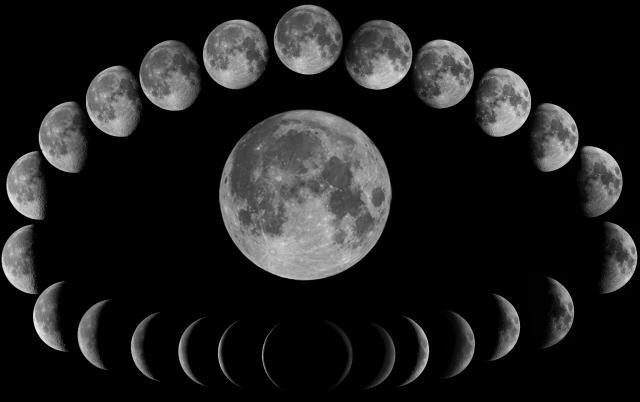 A Föld körüli keringése során a Hold megvilágítottsága folyamatosan változik a Nap–Föld–Hold rendszer tagjainak egymáshoz viszonyított helyzetének változása miatt. Amennyiben az égitestek sorrendje Nap–Hold–Föld, akkor láthatunk az égbolton újholdat. Ezután elkezd nőni az általunk megvilágítva látott terület nagysága, majd eléri a telihold állapotát, innentől kezdve pedig csökkenő fázisú Hold látványában lehet részünk. A Holdnak 27,3 napra van szüksége, hogy megkerülje a Földet, viszont ekkor még nem újra újhold. Ennek az az oka, hogy miközben a Hold kering a Föld körül, a Föld kering a Nap körül, és pályáján előrébb haladt, így a Nap más irányból fogja megvilágítani. Így újholdtól újholdig több idő telik el: 29,5 nap.