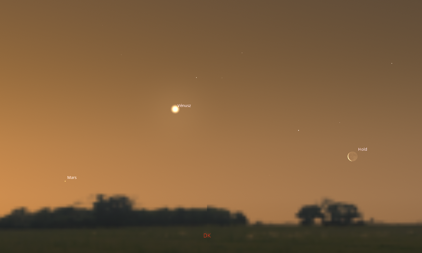 A Vénusztól 5 fokra a Marsot tudjuk majd megfigyelni, ezzel megkoronázva a napokig emlékezetes észlelési élményt.