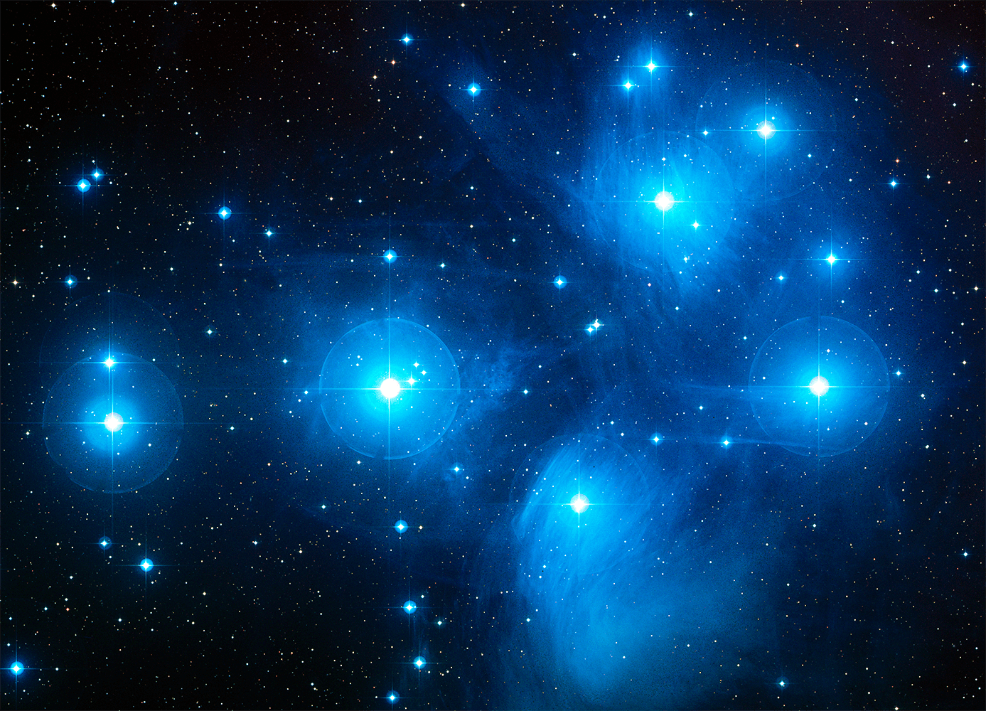 Majd fókuszáljunk a Messier 45 (M45), vagy közismert magyar nevén Fiastyúk nyílthalmazra. A halmaz több száz, jellemzően forró, fiatal (azaz csak 100 millió éves) csillaga közül szabad szemmel is már legalább féltucatnyit elkülöníthetünk. Innen is ered Hetes, Hét nővér vagy Plejádok elnevezése is. Jellegzetes alakja több ókori kultúrkörben is jól ismert volt.