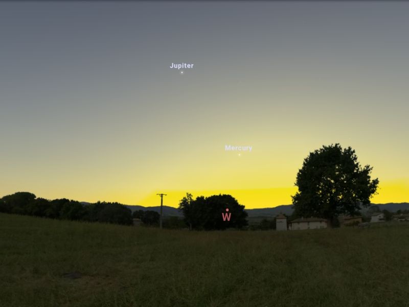 Március 11-én nem mindennapi csillagászati jelenséggel kezdődik a Merkúr-szezon. Naplementekor nem csak a szürke bolygó 89%-os korongját, hanem a Hold 3%-os sarlóját is észlelhetjük szabad szemmel. 18:16-kor a nyugati égboltra tekintve, 4 fokos magasságban láthatjuk a Merkúrt és 6 fokkal fölötte a Holdat. Mivel nemrég volt a felső együttállás, így a bolygó fényessége -1,25 magnitúdó lesz, ami nagyobb, mint a legfényesebb csillagé az égbolton. Ennek köszönhetően jó esélyünk van még szabad szemmel is megtekinteni a naplemente fényében. Sajnos a Merkúr 18:44-kor a horizont alá bukik, így kevés ideig észlelhetjük. Az együttállás megtekintése nem lesz egyszerű, mivel tereptárgyaktól mentes nyugati horizontra lesz szükségünk. Szomorkodásra semmi ok, mivel a következő napokban egyre magasabban lesz látható a bolygó.