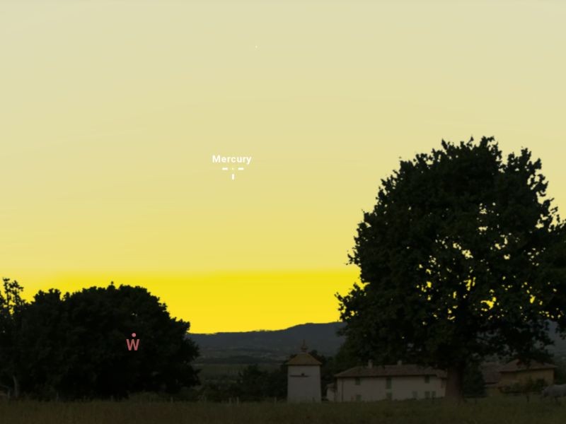 Március 24-án, vasárnap este kerül a legnagyobb nyugati kitérésbe az égitest. Ekkor tudjuk a legtovább észlelni a legnehezebben megtekinthető bolygót. 18 fokra lesz a Naptól, és 18:30-től nyugaton, 12 fok magasan észlelhetjük. A 0,07 magnitúdós égitest megpillantása nem lesz egyszerű feladat. Távcsővel megcsodálhatjuk a 43%-os fázisát, és szerencsés esetben a felszíni képződményeit is. A Merkúr 19:49-kor nyugszik le, így jóval több mint egy órán át láthatjuk távcsövünkben.