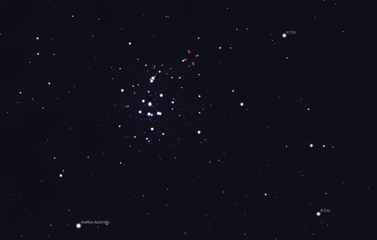 A következő jelenségre áttérve maradunk az üstökös témánál: november 9-én hajnalban látványos és fotózásra is kiváló égi jelenség figyelhető meg: a 24P/Schaumasse üstökös áthalad a híres M44, vagyis a Praesepe (Jászol) nyílthalmazon a Rák (Cancer) csillagképben. Az M44 halmaz egyike a legfényesebb és legismertebb nyílthalmazoknak, több száz fiatal csillagból áll, és szabad szemmel is ködös foltként látható. A megfigyeléshez legjobb időpont körülbelül 5:00, amikor az üstökös 62° magasan áll az égen, vagyis ideális pozícióban a hajnali sötét ég alatt. A 24P/Schaumasse rövid periódusú, mintegy 8,2 éves keringési idejű üstökös. Ezen a hajnalon a várható fényessége 12,5 magnitúdó körül lesz, így nagyobb átmérőjű távcsővel már észlelhető lesz, azonban a vártnál sokkal lassabban fényesedik, november eleji észlelése ezért igen nagy kihívás lesz, sőt még a fotózása is. Így aki észlelésre adja a fejét, fel kell majd alaposan készülnie.