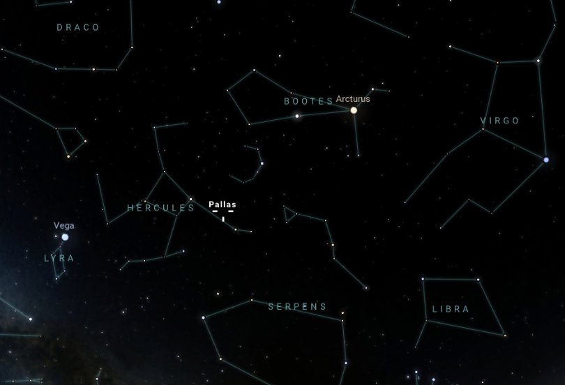 Aki szereti a kockázatot és az észleléssel együtt járó sikerélményt, keresse meg a Pallas kisbolygót május közepén az éjszakai égbolton a Hercules csillagkép irányában!