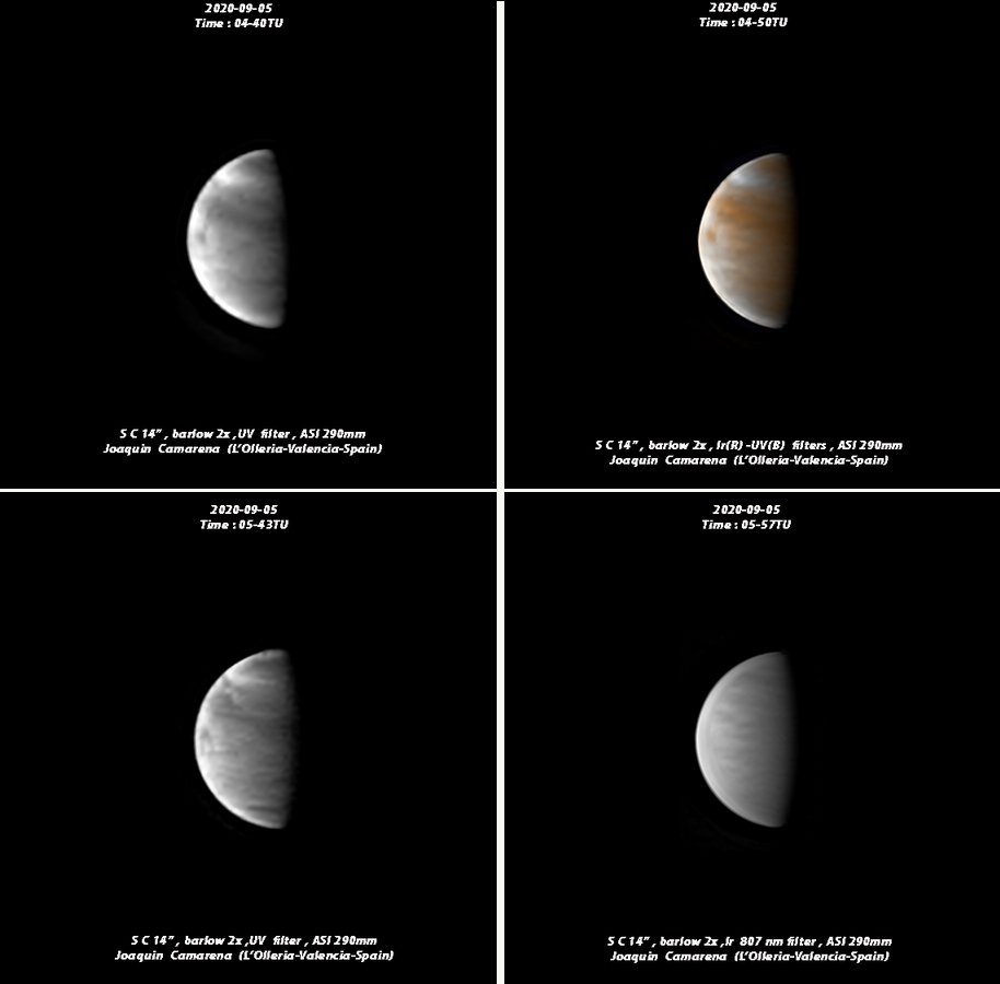 Kihívást kedvelőknek érdemes színszűrős észlelésekkel is próbálkozni, melyre a mostani láthatóság pompás lehetőséget ad! A Vénusz felhőalakzatai bár a látható hullámhosszon nagyon alacsony kontrasztúak, de ultraibolyában, és kisebb mértékben infravörösben rengeteget javul a felhők láthatósága.