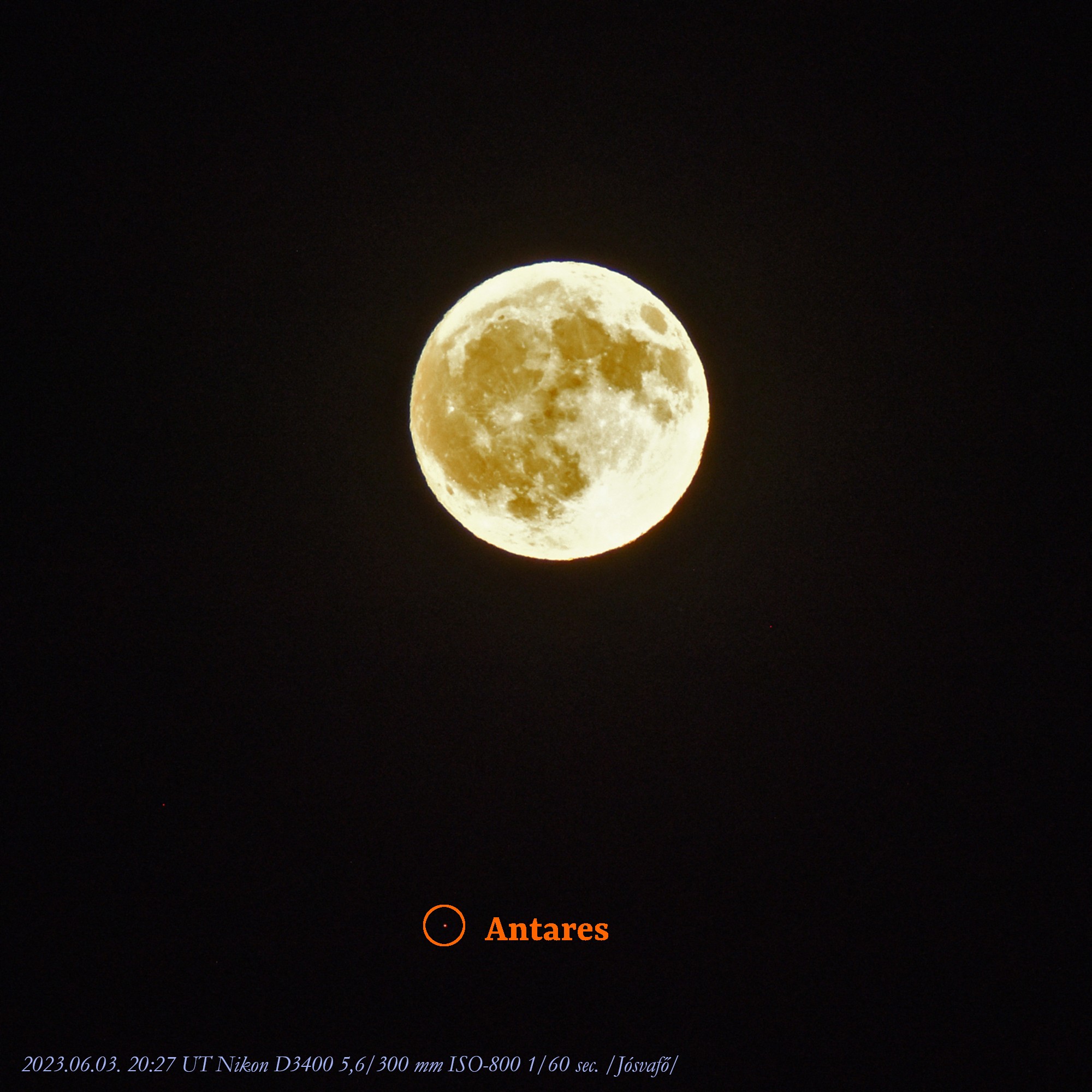 - Egész éjjel látványos lesz az Antares és a Hold közelsége. Fokozatosan, hajnalig csökken köztük a távolság, és izgalmasan mutatja, hogy valójában milyen gyorsan is halad a Hold az égbolton. 22 órakor 3 fok távolságra lesz a csillag a Hold peremétől.