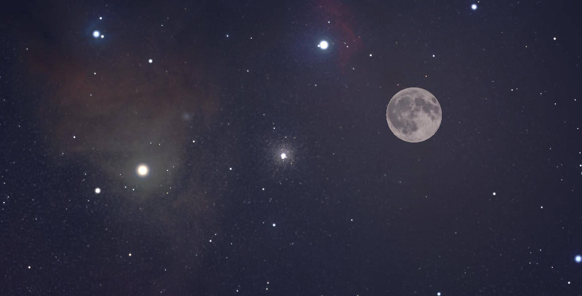 - 1 órakor delel a páros, 16 fok magasságban. A Hold ekkor már csupán fél fokra helyezkedik el a halmaz középpontjától, azaz átmérőjével megegyező távolságban lesz.