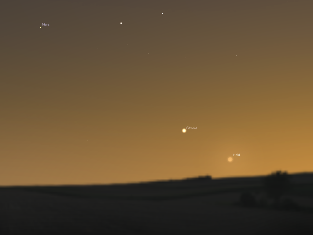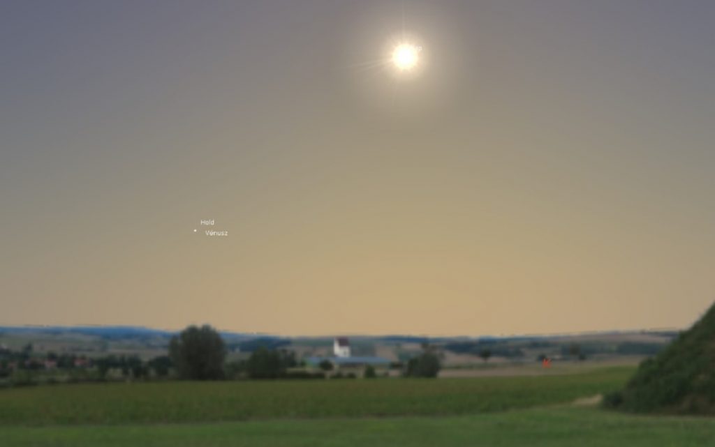 A Vékony holdsarló igen halvány lesz a látómezőben, de mellette jobbra lefelé, megkapó közelségben tündököl majd a Vénusz!