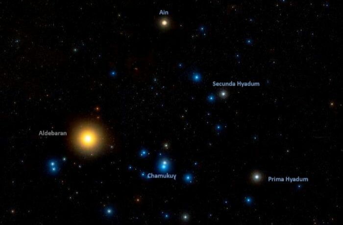 Ezen mélyég-objektumok közé tartozik a Hyadok csillaghalmaza is, amellyel július 13-án hajnali 3:30-kor látványos együttállást mutat a Vénusz. A bolygó az Ain nevű csillagtól balra mindössze 35’-re fog elhelyezkedni az együttállás pillanatában. Ez a szögkülönbség hozzávetőlegesen a telihold látszó átmérőjének felel meg.