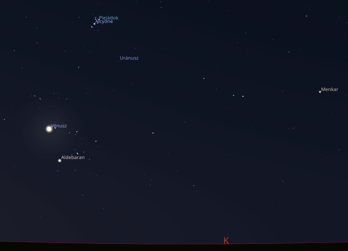 Hajnali 3:30-kor a Vénusz már 11°-os magasságban lesz és felette újabb 11°-kal a másik fényes és közeli csillaghalmaz, a Fiastyúk is látszik majd, még teljesebbé téve az együttállást.