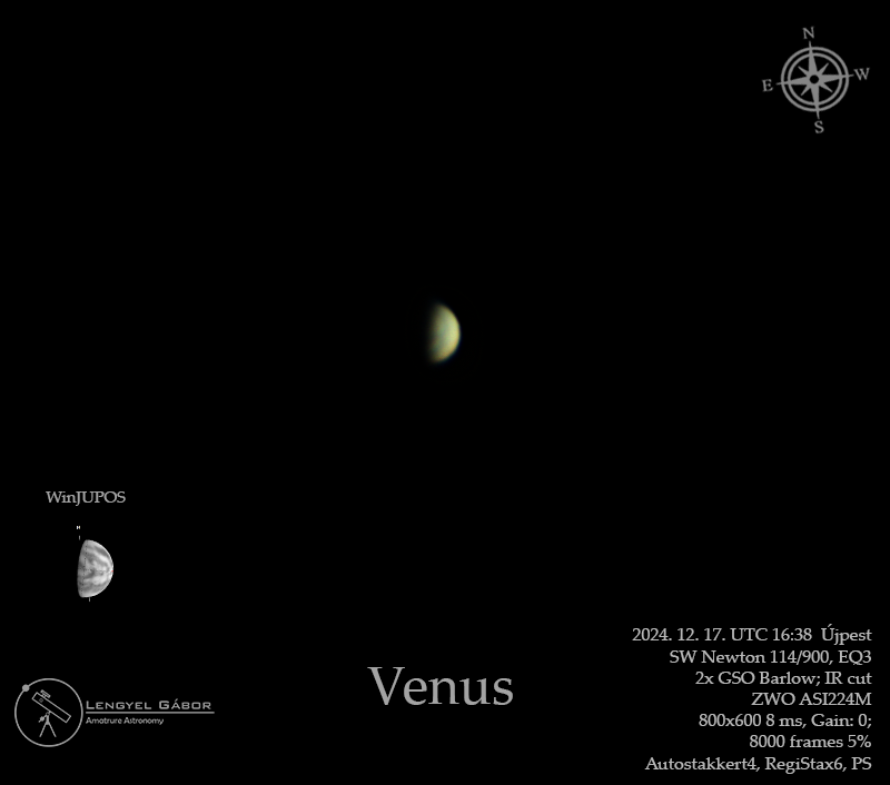 A bolygót ezekben a hetekben az esti órákban dél-délnyugat felé figyelhetjük meg, amint magasan látszik a horizont felett, s onnan küldi szét ragyogó, fehér sugarait mindenfelé.