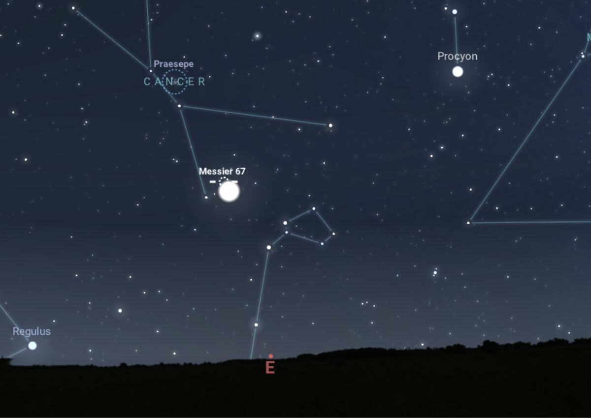 A Királykobra-halmazként is ismert Messier-objektum a Rák csillagképben található és kevésbé közismert. Ez utóbbinak az lehet az oka, hogy szintén ebben a konstellációban van a Méhkas vagy más néven a Jászol-halmaz, amely szabad szemmel is észlelhető, és már az ókortól kezdve ismerték. Sajnos az M67 fényessége csak 6,1 magnitúdó, ezért szabad szemmel nem is látszik, és csak 1779 óta ismerik a csillagászok, azonban van annyira izgalmas objektum, mint a már említett Jászol (latinosan Praesepe, másik ismert nevén Messier 44).