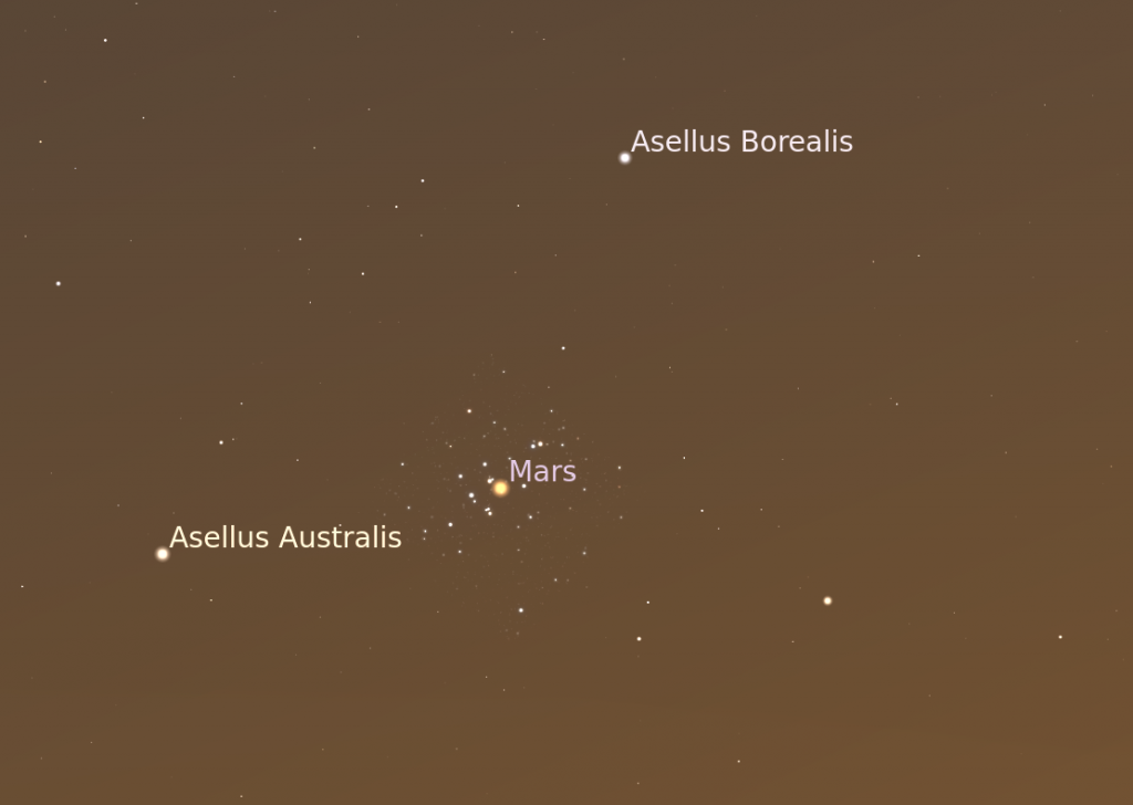 A Méhkas csillagai nagyobb binokulárral biztosan látszani fognak, a Mars szabad szemmel is.