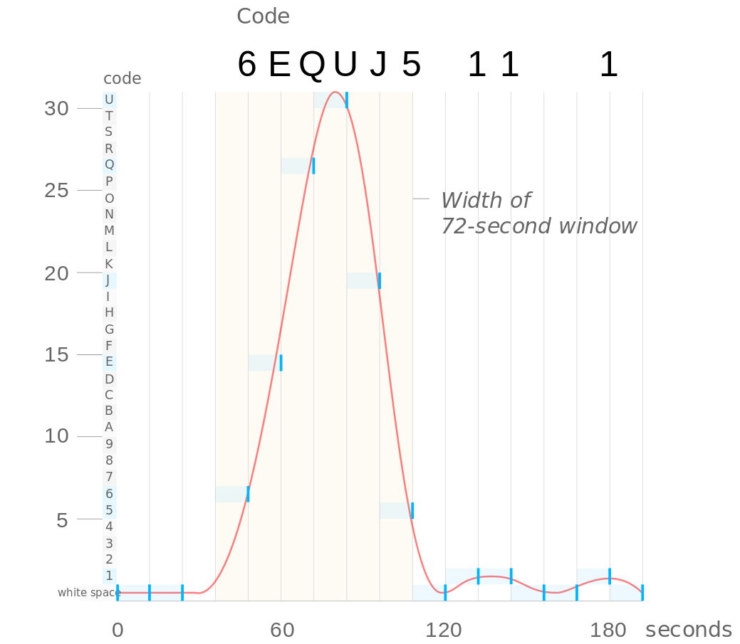 - Nagy jel/zaj arány. Egy-egy szám azt mutatja, hogy a rádió-háttérsugárzáshoz képest hányszoros intenzitású jelet észleltünk egy-egy 12 másodperces időszakban. Ezek: 6=6-szoros, E=14-szeres, Q=26-szoros, U=30-szoros, J=19-szeres, 5=5-szörös. Az összesen 72 másodpercig tartó jelsorozat rendkívül nagy intenzitása miatt nem lehet bármilyen zaj vagy „kóbor” jel a rendszerből.