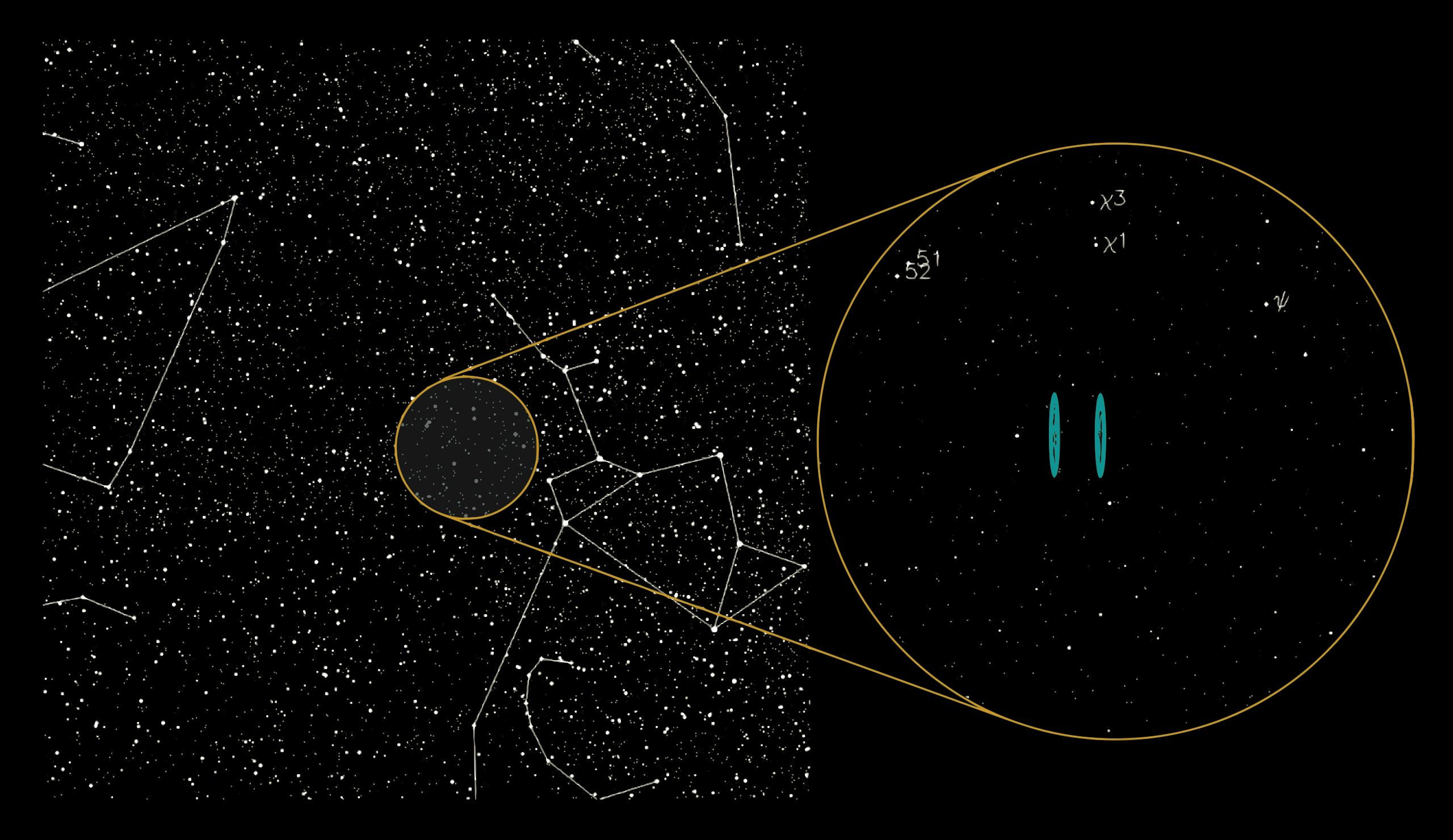 2. Honnan jött a jel? Ez sem dönthető el teljes bizonyossággal. A rádióteleszkópnak két (abban az időben a mérési adatsorokban sajnos még nem megkülönböztetett) érzékelő tölcsére volt. Az érzékelők két, a Nyilas csillagképben található külön-külön 1x20 ívmásodperces területet fedtek le. Ezen területeken belüli bármelyik csillagról érkezhettek a jelek.