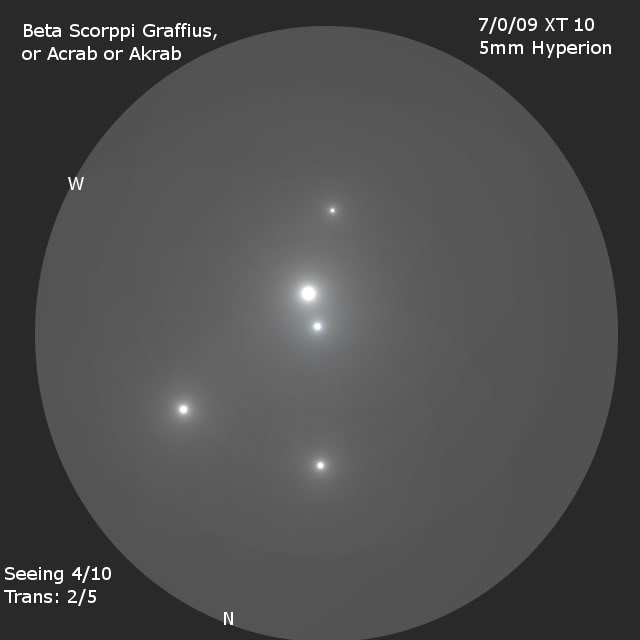 Az Acrab a Skorpió hármas ollójának legfelső, legészakibb csillaga. Neve arabul “skorpió”-t jelent.