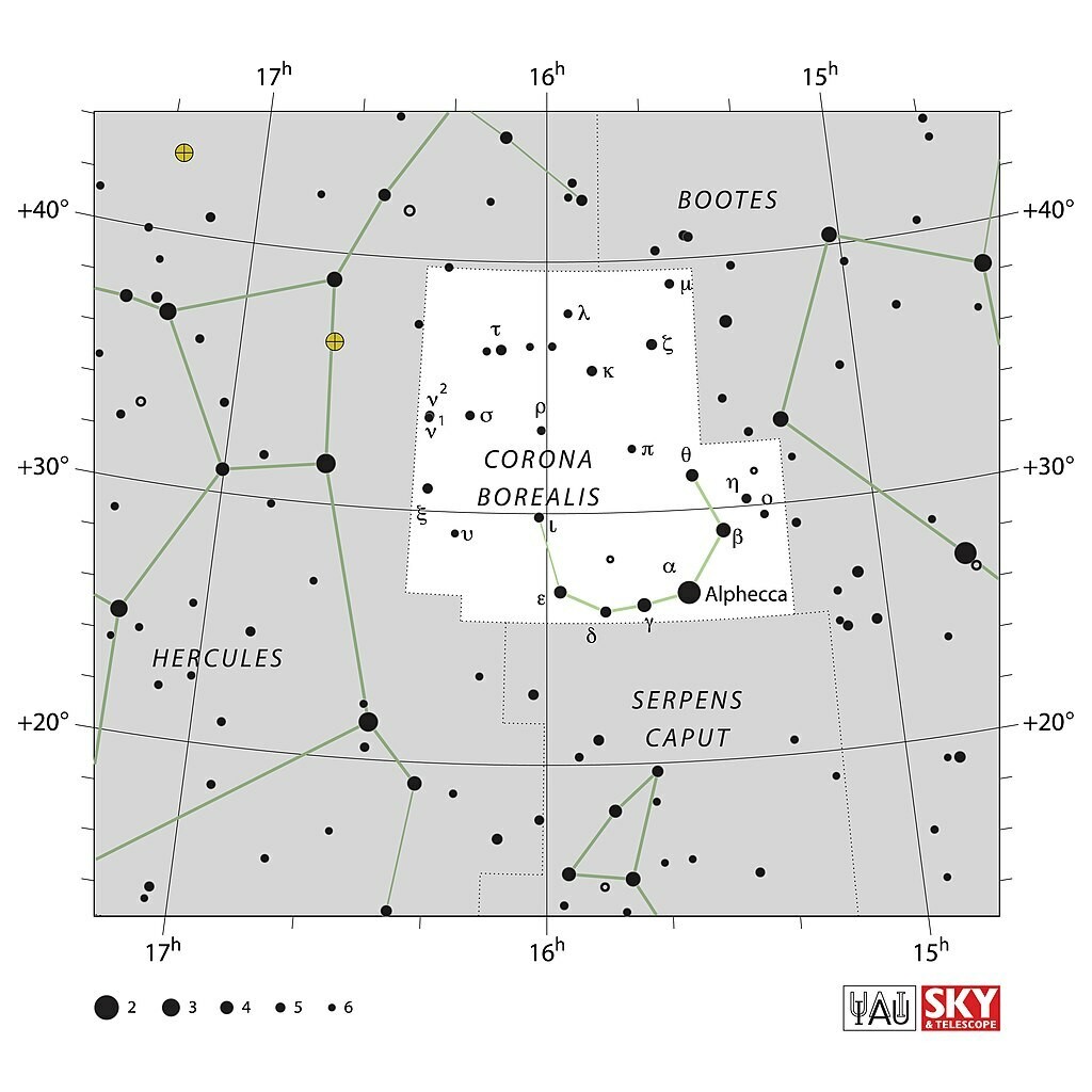 1866 májusában a csillagképben egy nóva tűnt fel – ez a jelenség szolgáltatta az első alkalmat arra, hogy az ilyen jellegű csillagok színképének vizsgálatára spektroszkópot alkalmazzanak.
