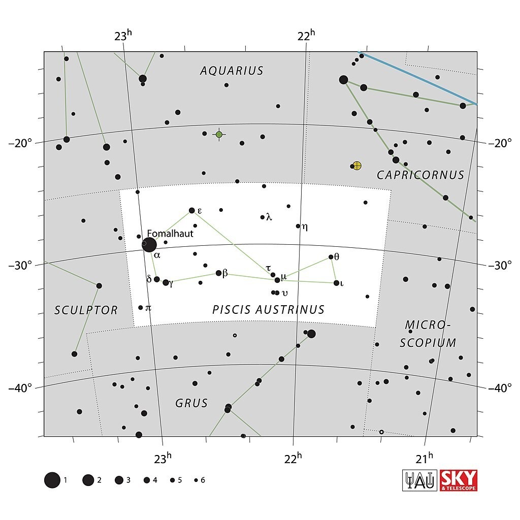 - ε PsA: a második legfényesebb csillag fényessége 4,17 magnitúdó. Körülbelül 550 fényévre található tőlünk. Kettőscsillag, kísérője valószínű egy vörös törpe.