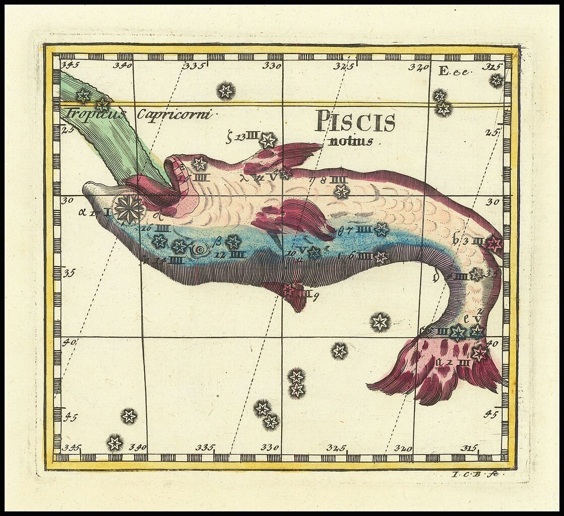 Az i. e. 5. században Ktésziasz görög történész azt írta, hogy a hal állítólag egy szíriai Bambüké közelében lévő tóban élt, és megmentette Derketót, Aphrodité lányát. Ezért a tettéért az égre helyezték. Emiatt a halakat szentnek tekintették, és a szírek nem ették meg őket.