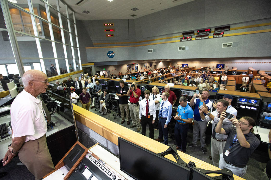 Az első sikeres holdra szállás legénysége által még az űrből adott utolsó televíziós adásban így mondott köszönetet: „Önök csak hármunkat látják, de a felszín alatt ezrek és ezrek vannak még, nos nekik csak annyit szeretnék mondani: Nagyon szépen köszönöm.”
