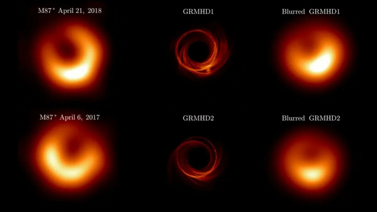 Érdekes eredmény a fekete lyuk elemzése kapcsán az is, hogy a körülötte látható gyűrűalakzat 2017-ben egy bizonyos részén fényesebb volt a többi régiónál, míg ez a fényesebb régió 2018-ra körülbelül 30 fokkal odébb vándorolt. Ezt az óramutató járásával ellentétes irányú eltolódást a kutatók szerint a fekete lyukat övező anyagbefogási korong különleges, turbulens áramlásai okozzák.