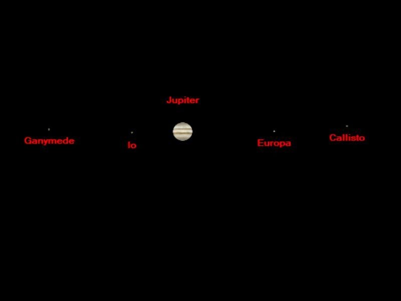 Binokulárral észlelve egy látómezőben láthatjuk a Jupitert és négy Galilei-holdját, valamint a ragyogó Esthajnalcsillagot. A holdak sorrendje a következő lesz: a Jupiter bal oldalán lesz látható a Callisto, amely a legkráterezettebb kísérő a Naprendszerben. Tőle jobbra lesz (a Jupiter bolygó felé közelebb) látható az Europa, amelynek jégpáncélja alatt több víz van, mint a Földön. A bolygó átellenes oldalán, a gázóriáshoz közelebb helyezkedik el az Io, amely a legvulkanikusabb hold, a bolygótól távolabb pedig a Ganymedes, amely Naprendszerünk legnagyobb holdja. Egy csillagászati távcső megfordíthatja a kép tájolását (a bal és jobb oldalt felcseréli), igy a holdak sorrendje is fordított lesz.