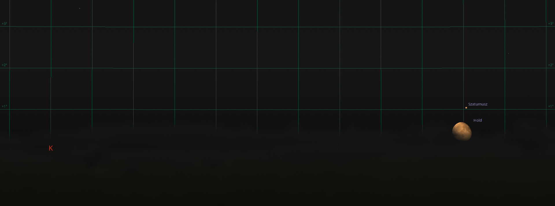 Július 24-én 22:17-kor kel majd a 84%-os fázisú Hold, ekkor pillanthatjuk majd meg a keleti horizonton, felette 22'-re fénylik majd a Szaturnusz. Ekkor az együttállás megfigyelése nem lesz könnyű, mindenképp javasolt egy viszonylag magasabban fekvő, keleti irányba jó rálátású hely kiválasztása a sikeres észleléshez. Amennyiben pedig lemaradnánk erről a látványról, egy kicsit később, 23:25-kor a duó már a látóhatár felett 10°-kal lesz, vagyis továbbra sincsenek túlságosan magasan, de mindenféleképpen könnyebb észlelési lehetőséget kínálnak. Ekkorra már a két objektum látszó távolsága is nagyobb lesz: 43'-re lesz majd a Szaturnusz a Holdtól, de még továbbra is egymáshoz közel látszanak majd.