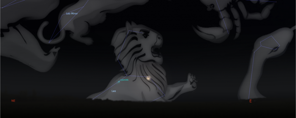 Szintén érdekesség, ha már kiléptünk a csillagok alá, hogy a Leonidák meteorrajt is megfigyelhetjük, ugyanebben az irányban.
