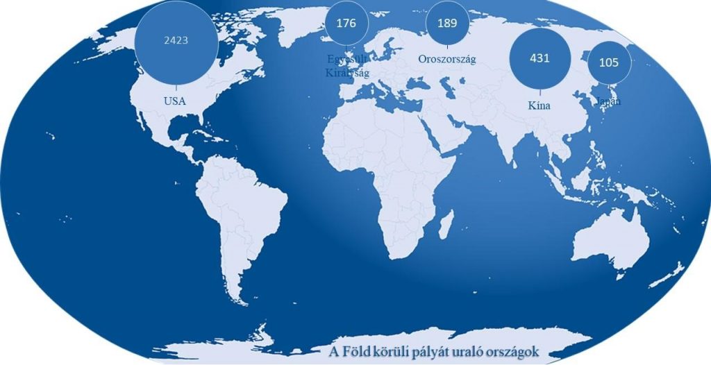 Talán nem meglepő, hogy az USA, Kína, és Oroszország van a lista élén. Ez részben természetesen az 50’-es évektől folytatott űrversenynek köszönhető, melynek eredményeképpen az USA az összes működő műhold több mint felét, 2423-at tudhat magáénak. Oroszországot lehagyva Kína 431-nél tart, míg a hajdani űrverseny-vezér 189-et üzemeltet.