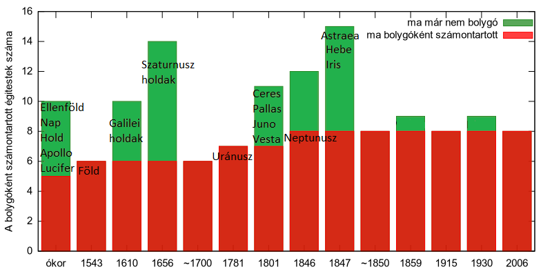 Így szépen egyre kevésbé utaltak a Jupiter és Szaturnusz körül keringő holdakra bolygó néven. Az ezerhétszázas évekre pedig már elmondhatjuk, hogy mindössze hat égitestről beszéltek bolygóként. A következő évszázadban teljes konszenzus uralkodott a világban ezzel kapcsolatban.