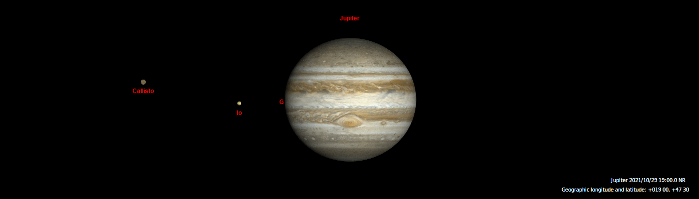 Ilyet láthatunk majd 2021. október 29-én, pénteken este is, amikor a három hold közül csak egyetlen egy, az Europa díszeleg majd a bolygókirály mellett! A többiek sorra különböző módokon bújnak el a bolygó előtt, mögött, vagy annak árnyékában.