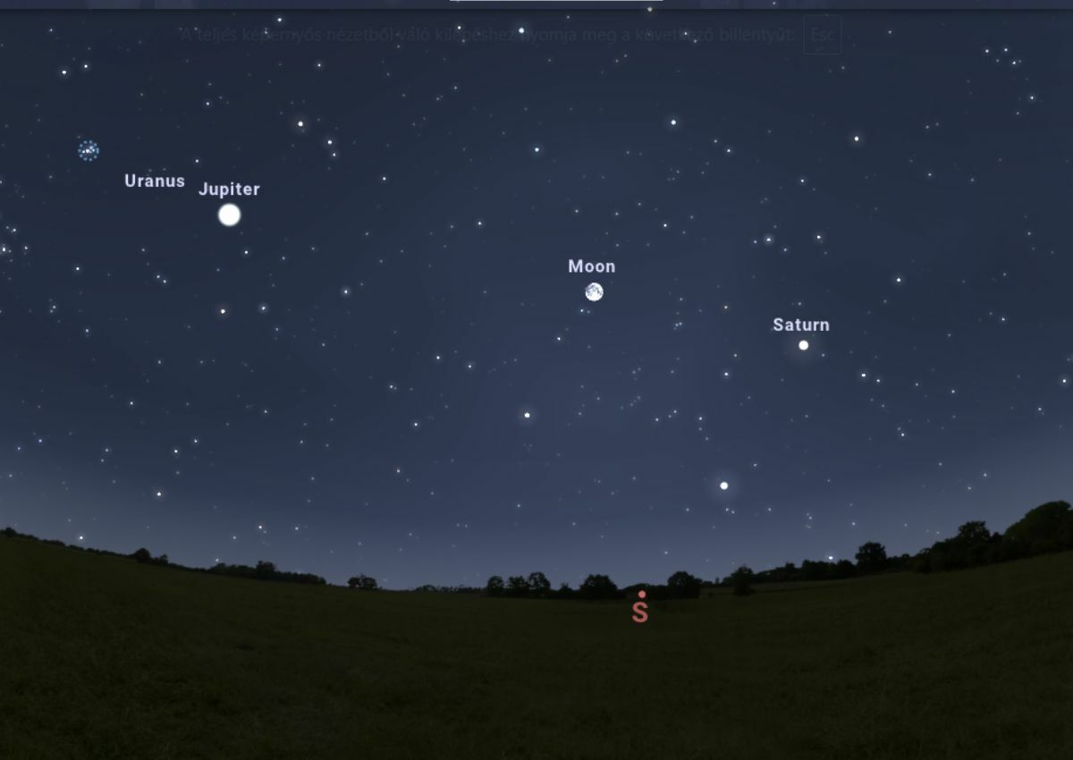 A Hold helyzete szeptember 29-én, pénteken, 00:05-kor. FORRÁS: Stellarium-web.org