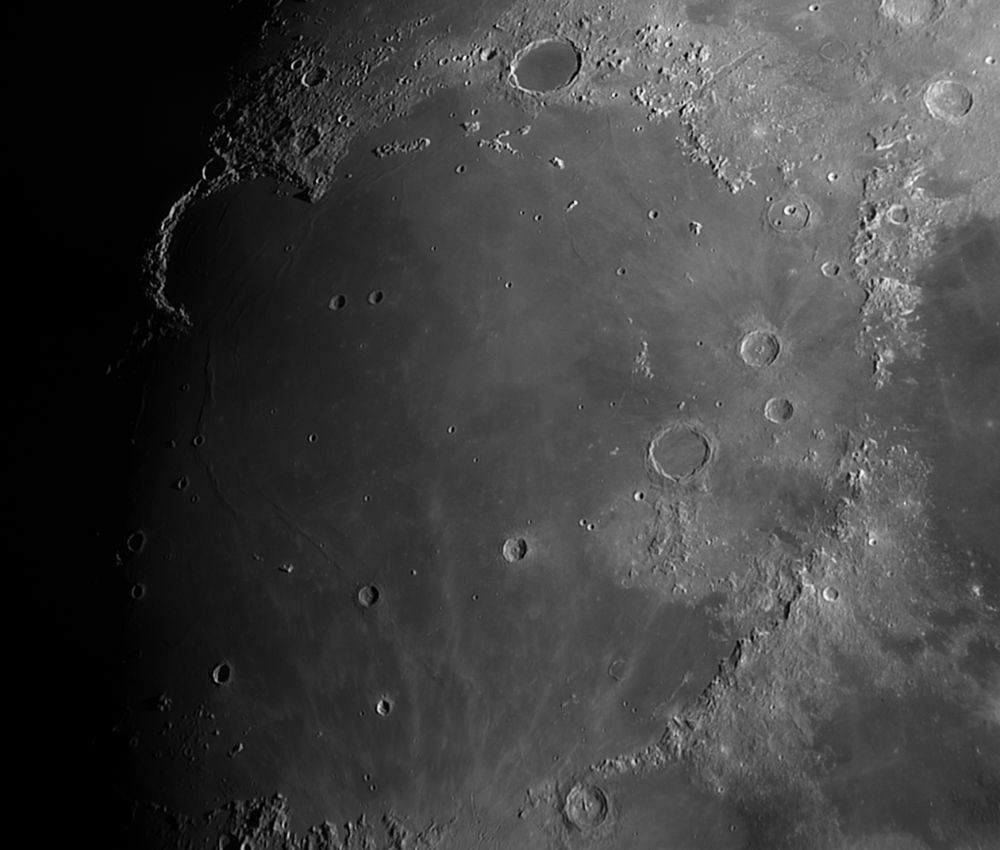 A hegymászás után érdemes a kráterek világában is elmerülni. A Kárpátoktól délre látható a 93 km átmérőjű Copernicus-kráter, amelynek sugársáv-rendszere, rianásai, sok teraszos sáncfalai és központi csúcsa is van. Mondhatni mindent tartalmaz, ami egy krátert ellenállhatatlanná tesz. A Copernicustól nyugatra egy másik sugárkrátert is távcsővégre kaphatunk, a Keplert. Az Oceanus Procellarum, azaz a Viharok Óceánjának sötét, bazaltláva-tengeréből kibukkan a 32 km-es kráter, amelynek mélysége 2750 méter, és sugársávjai átszelik a holdi tengert.