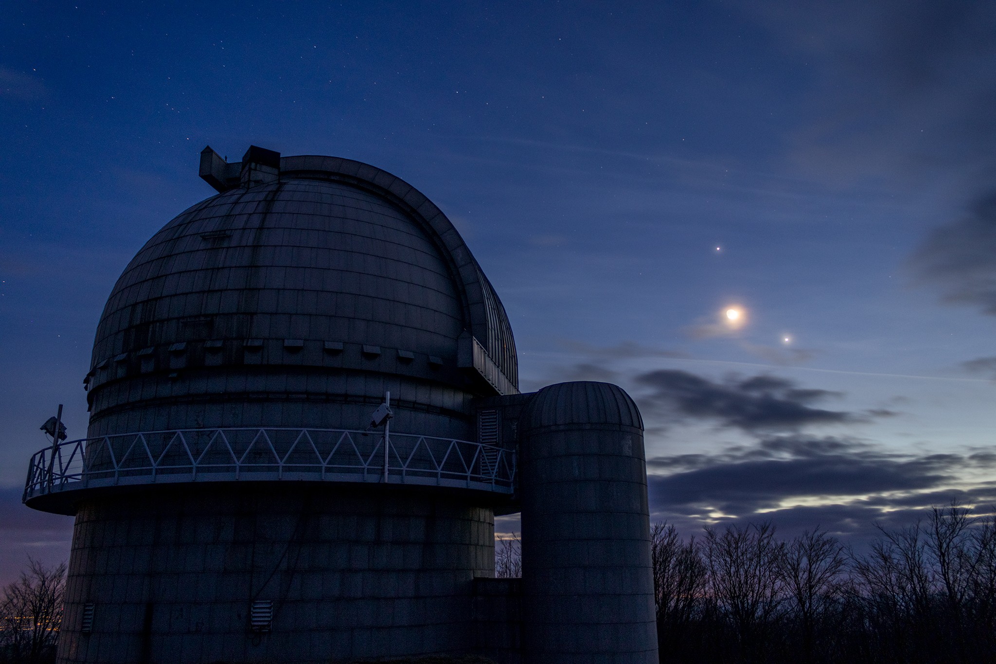 Balázs Gábor csillagász Piszkéstetőn teljesített szolgálatot 2023. február 22-én, amikor a Vénusz–Hold–Jupiter triászt örökíthette meg.