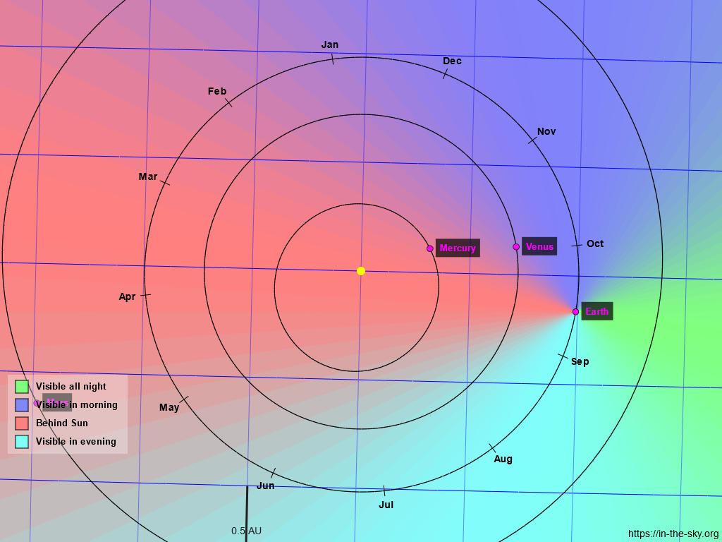 - az esetek felében nem napnyugtakor, hanem napkeltekor észlelhetjük a bolygót: ilyen ez a mostani eset is, sajnos korán kell kelni.