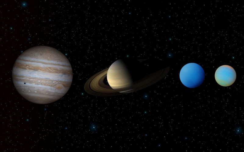 A Naprendszer négy óriásbolygója, a külső bolygó névvel is jellemzett Jupiter, Szaturnusz, Uránusz, illetve Neptunusz a Naptól a belső bolygóknál távolabb keletkezett, az úgynevezett hóhatáron túl. Ez a határ a Mars és a Jupiter pályája között húzódik, és kijelöli azt a hőmérsékletet, amelynél távolabb a Naptól az illékony anyagok képesek arra, hogy szilárd halmazállapotúak, fagyottak maradjanak. Mivel az illékony anyagok jóval gyakoribbak a belső bolygókat felépítő nehezebb elemeknél, a Jupiter típusú bolygók azoknál jóval nagyobb tömeget, Földünk tömegének nagyjából a négyszeresét tudták befogni, így a legkönnyebb elemek, a hidrogén és a hélium is nagy mennyiségben található meg köpenyükben. Az ilyen módon kialakult nagyobb planetezimálok egyre gyorsabb ütemben fogták be maguk köré a csillagkörüli porkorong anyagát, és érték el jelenlegi méreteiket. Az elmélet szerint a Szaturnusz tömege pusztán azért kisebb a Jupiterénél, mert később keletkezett annál, így kevesebb ideje volt az anyag befogására.