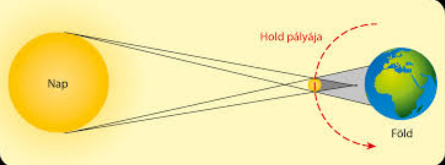 Holdfogyatkozás (a távolság- és méretarányok jelentősen torzítva vannak).