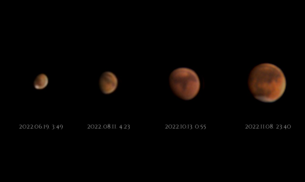 Ismét oppozícióban a Mars – tehát a legszebb, legfényesebb és legnagyobb Marsban gyönyörködhetünk a 2,2 éves oppozíciós ciklus során! Sőt, több mint 10 évig, egészen 2033 júliusáig nem lesz újra ilyen fényes és kiterjedt látszó átmérőjű! Bizony, a Naptól számított negyedik bolygó december elsején ér földközelbe, majd egy héttel később, december 8-án oppozícióba, vagyis szembenállásba a Nappal.