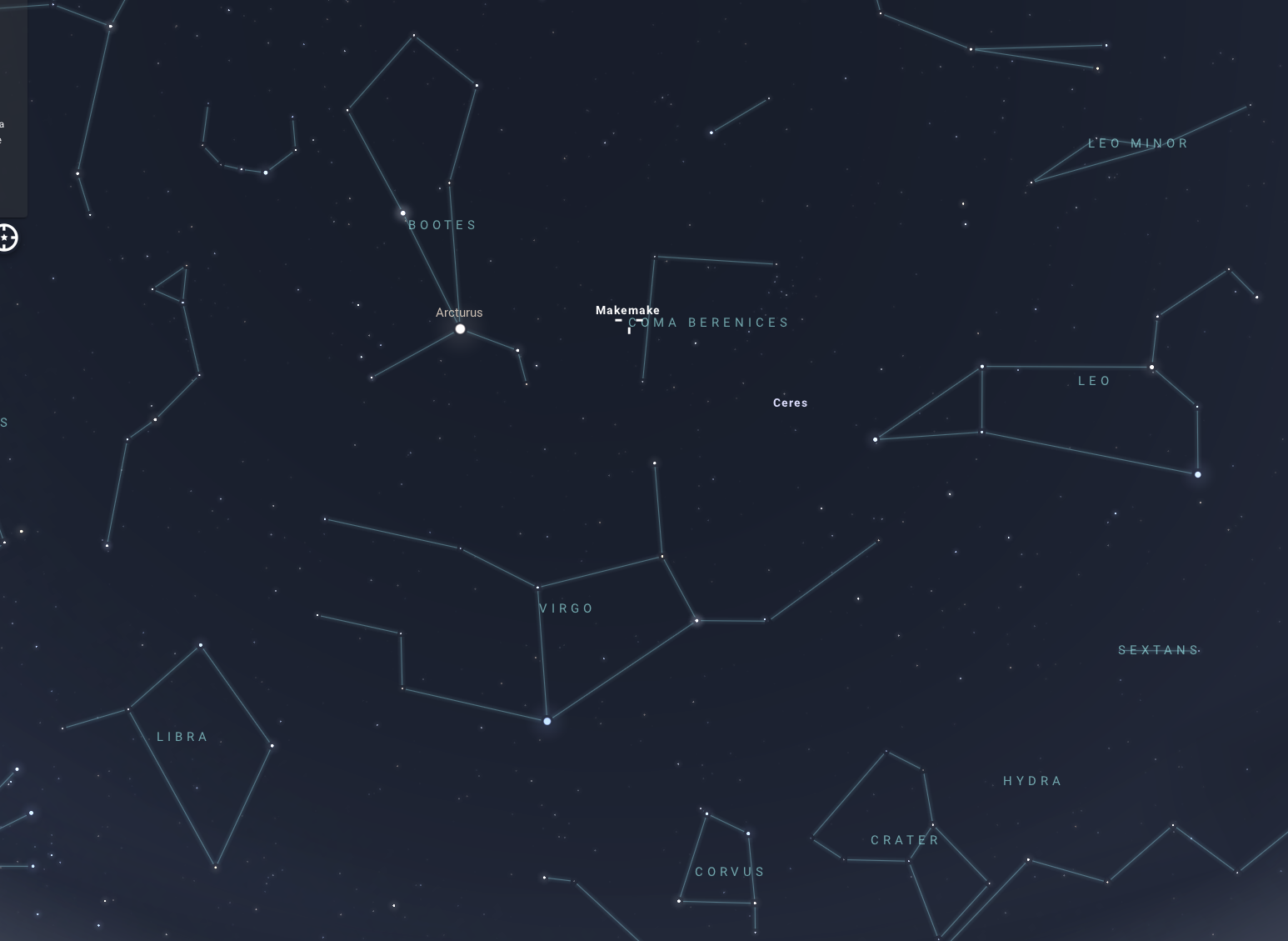 Jó hír, hogy nem kell feltétlenül hajnalban kelni, egész éjszaka próbálkozhatunk: a Makemake a Coma Berenices csillagkép Bootes felé eső oldalán lesz megfigyelhető. Alkonyat előtt kel, pirkadat után nyugszik, és éjfél után éri el a legmagasabb, megfigyelésre leginkább alkalmas pozícióját, 60 fok körüli delelési magassággal.