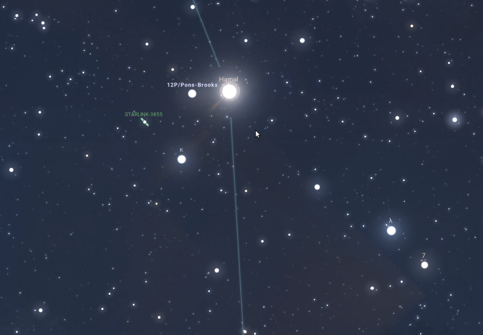 Ezúttal az üstökös a tavaszpontnak is otthont adó Kos csillagkép legfényesebb csillagát, a Hamalt látogatja meg. A március végi, illetve áprilisi égen különösképp érdemes odafigyelni erre az üstökösre, hiszen ebben az időszakban egyre fényesebb, talán szabad szemmel is megpillantható lesz egy tiszta egű, fényszennyezéstől mentes helyen. Az élmény teljességéhez azonban mindenképpen ajánlatos távcső vagy binokulár használata.