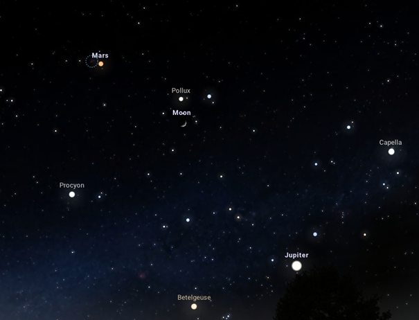 Aki pedig szeretne tovább szemlélődni a szabadban, megtalálhatja az Ikrek csillagkép mellett található Rák csillagképben a Mars vörös fénypontját is. A bolygóhoz közel látszik majd az M44-es katalógusszámmal jelölt, Praesepe nevű nyílthalmaz is, amelyet Jászol-halmaz néven is ismerünk. Ennek megtekintéséhez azonban a holdfény miatt szükség van legalább egy binokulárra, avagy távcsőre. Megjegyzendő, hogy a következő napokban a Mars áthalad majd a nyílthalmaz északi részén, amelynek látványossága szintén megfigyelésre méltó.