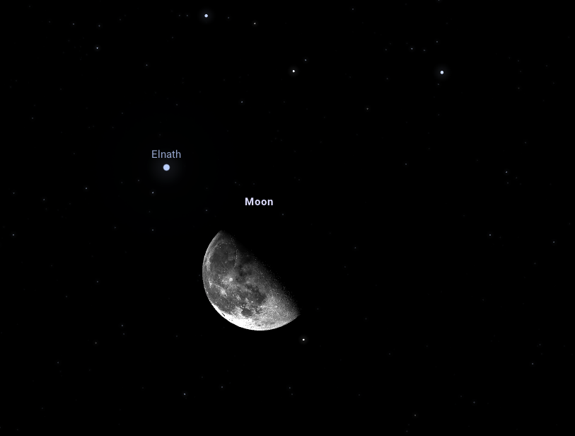 Szeptember 24-ére virradóan a Hold 58%-os fázisába ér, vagyis félholdként látszik majd az égbolton. Hajnali 3:42-kor pedig 23'-es közelségbe kerül a Bika csillagkép 1,7 magnitúdós bétájával, az Elnath csillaggal. A szoros együttállás ráadásul éppen a Hold terminátorvonala felett következik majd be, így különösen érdekes látványt nyújt majd. A csillagászatban terminátornak nevezik egy adott égitesten az éjszakát és a nappalt, tehát a sötét és a világos oldalt elválasztó vonalat.